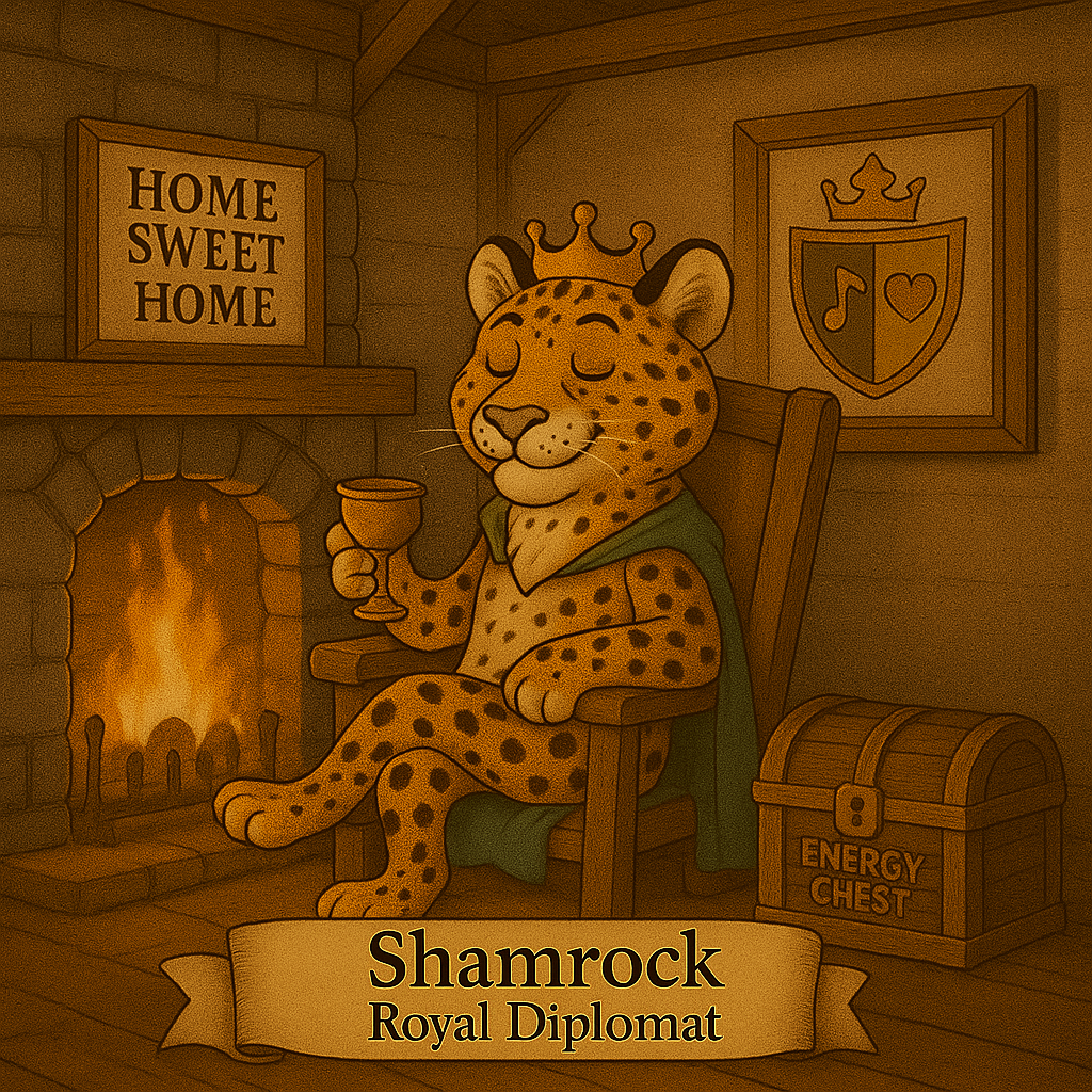 Shamrock's Cottage"Shamrock here, I'm the Royal Diplomat... Welcome to my cozy, calm, warm Cottage. It's just my size to come home alone and gain Energy Coins!"