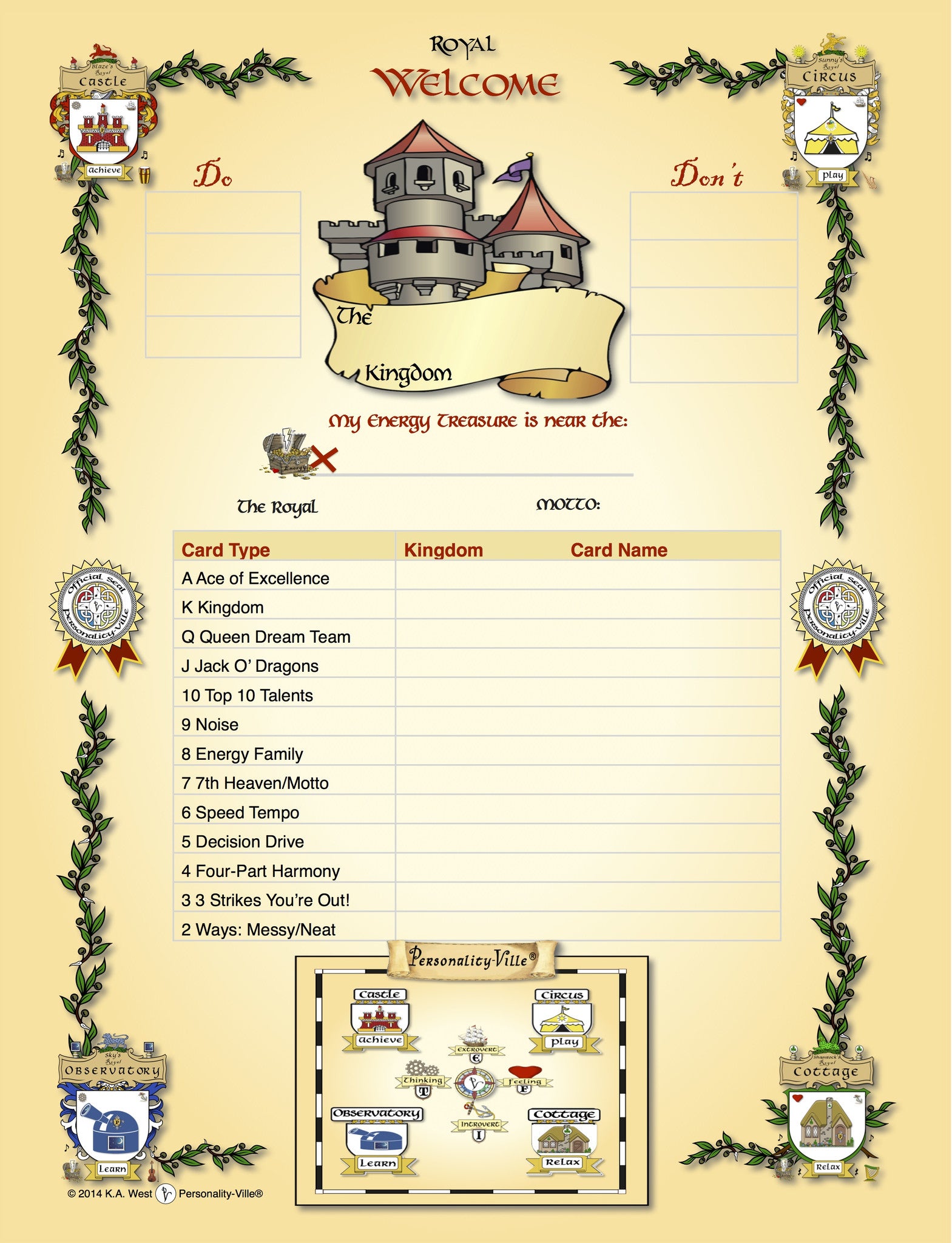 60+ Full-Color Pages. Includes all of the 52 Quiz Cards, Mini-Results, Map, Profile Answer Sheet, Welcome Poster, Dragon Drool Anonymous Sharing game instructions, Top 10 Talent Poster, Welcome Door Banner and more.