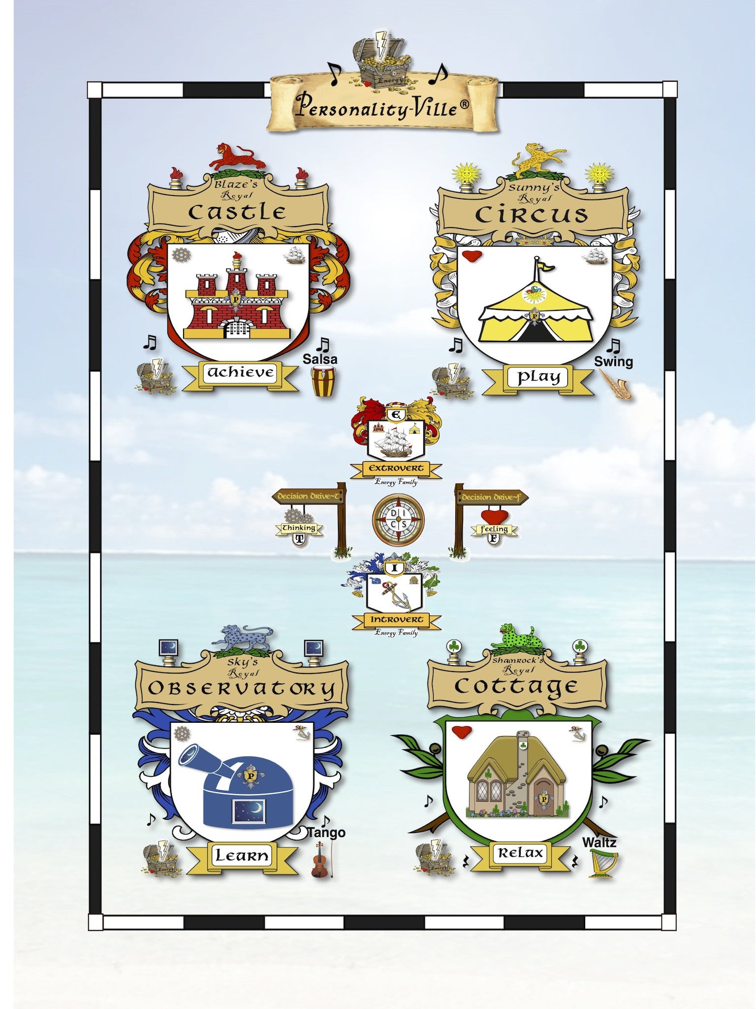 For business, education and personal use. Based on a fun fable that's like Who Moved My Cheese? meets personality styles. It's all based on a magical, musical kingdom where four types of kingdoms rule: Royal Castle, Circus, Observatory, or Cottage.