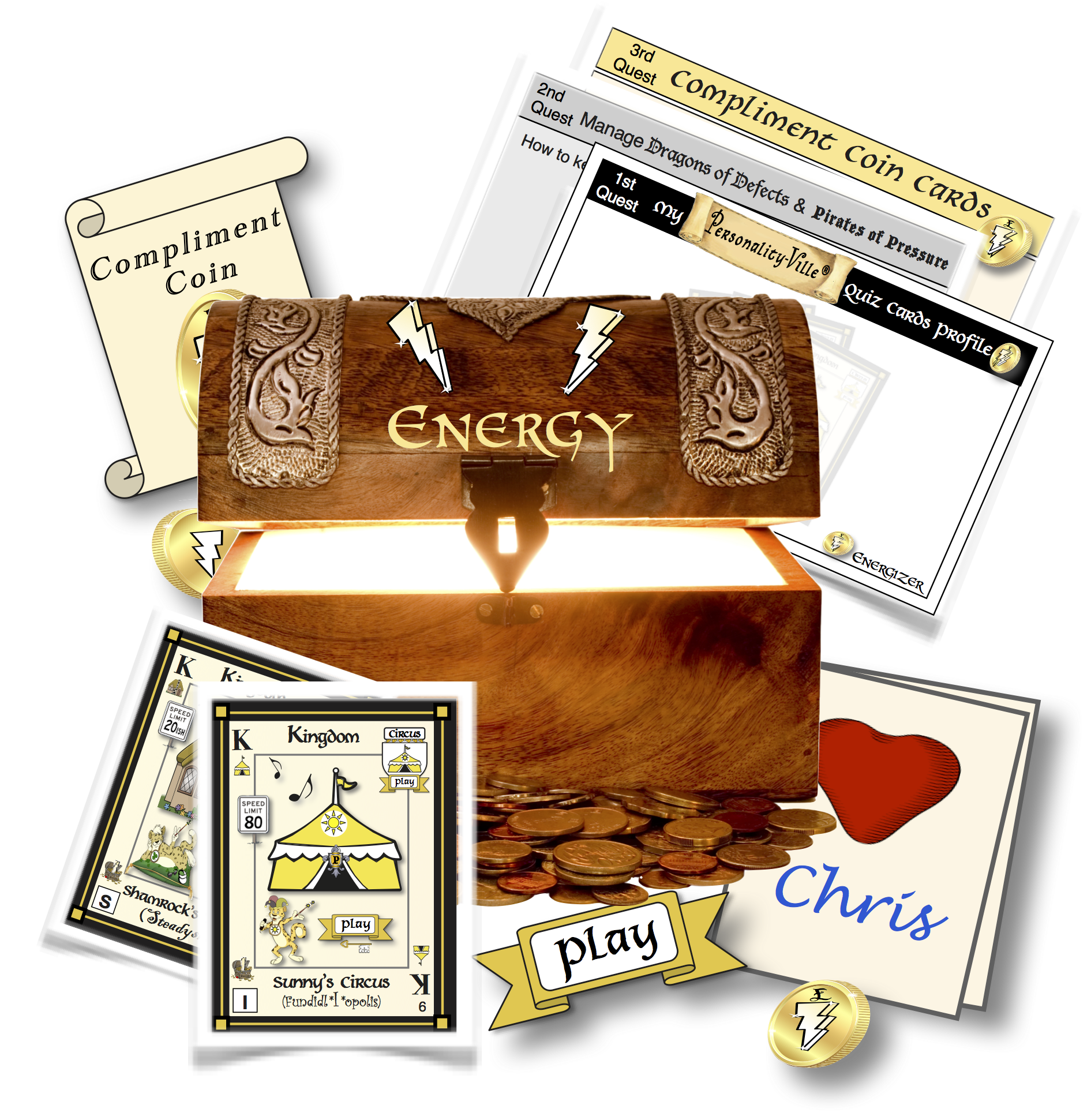 Intro: Personality-Ville's main premise is taking important abstract concepts and bringing them to life for easy and memorable application in your daily life. The number one way we do this is by giving your "internal energy bank" a physical symbol = Treasure Chest.
